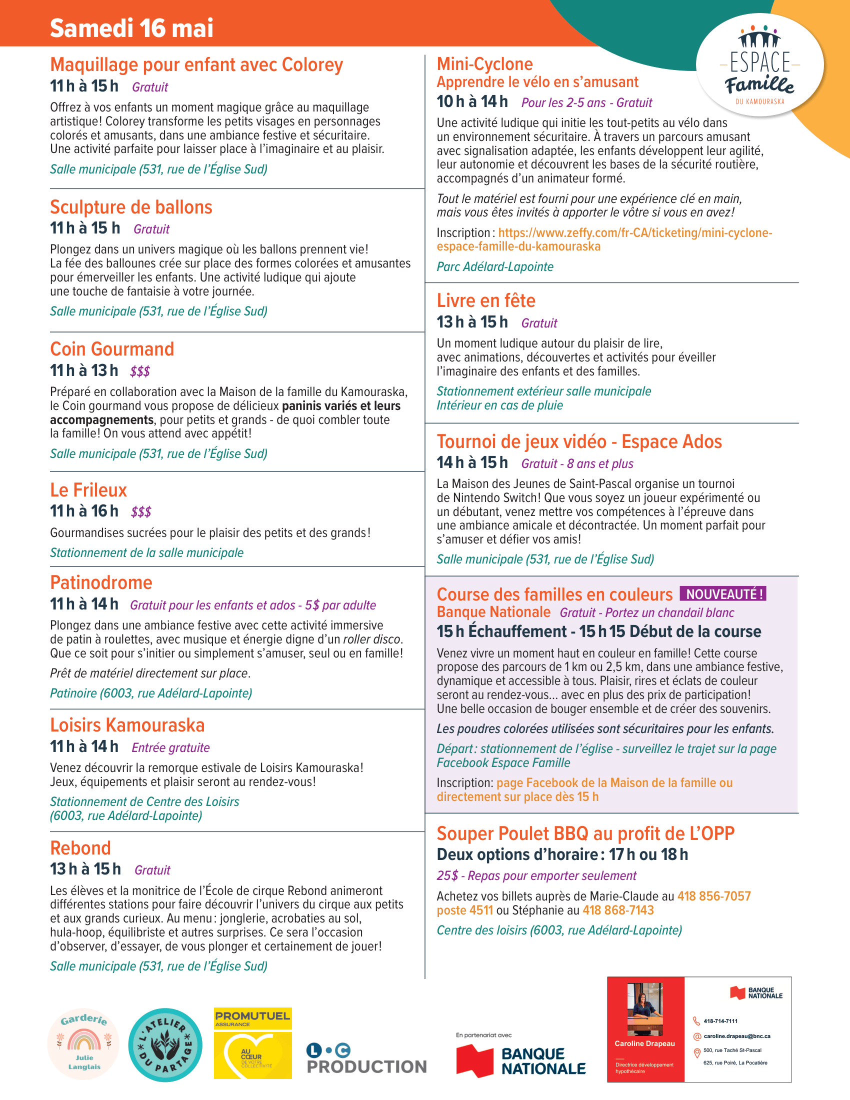 Anciennement appelé le Salon de la famille du Kamouraska, l'Espace famille est un évènement amusant et instructif à la fois, qui propose plusieurs kiosques sous un même toit. Vous découvrirez les nombreuses richesses dont regorge notre région, en lien avec la famille.