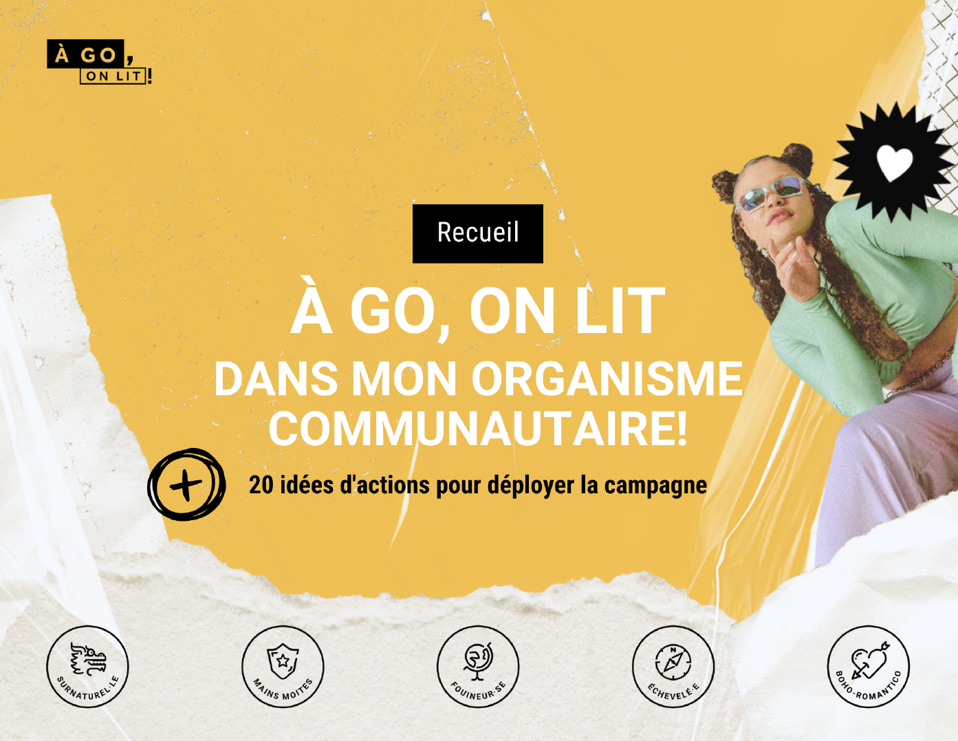 Ce guide vous offre quelques idées d’actions à mettre en place pour déployer À GO, on lit! dans les maisons des jeunes, les carrefours jeunesse‑emploi ou tous autres organismes qui ont comme clientèle les adolescent.es et jeunes adultes. Ce guide est général afin de convenir aux réalités bien différentes d’un milieu à un autre.