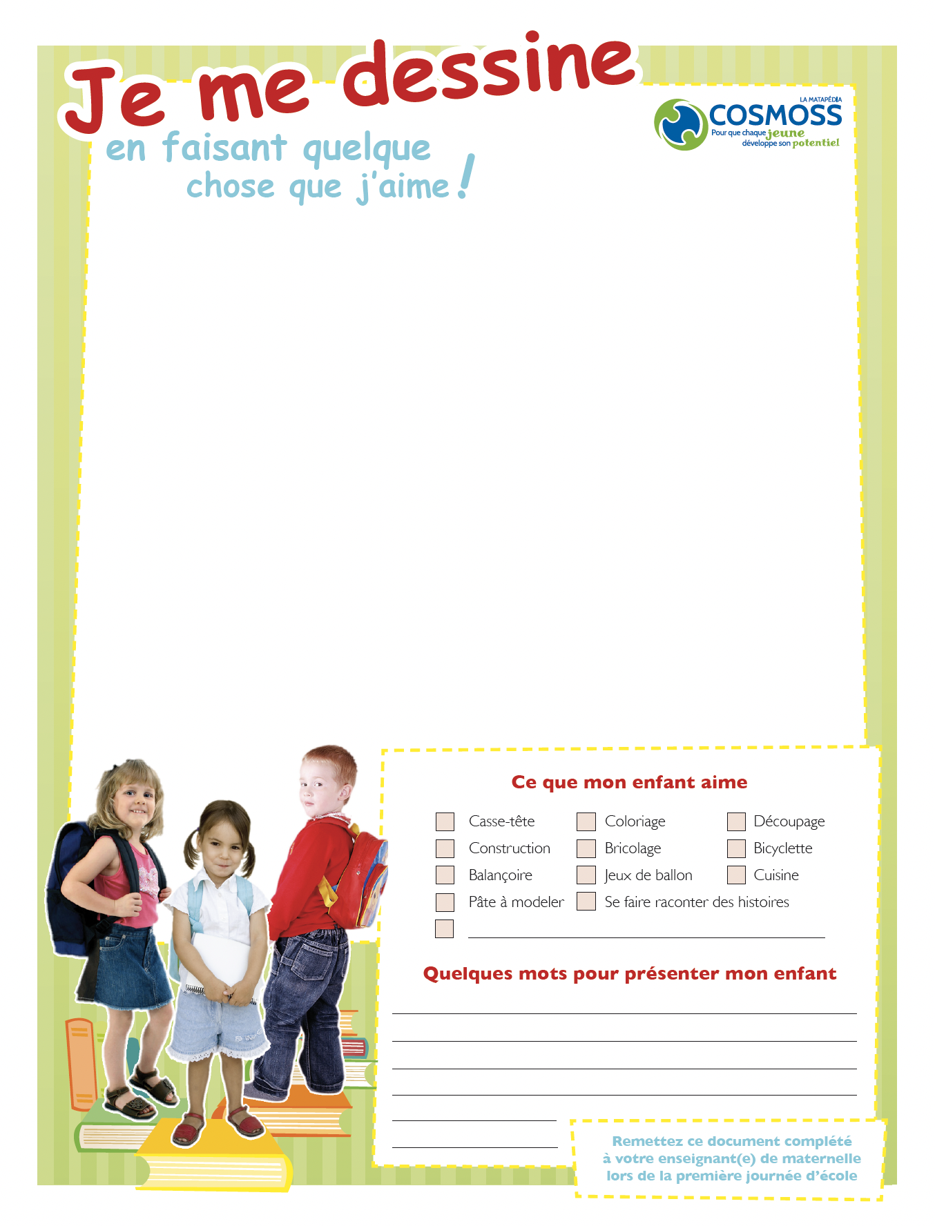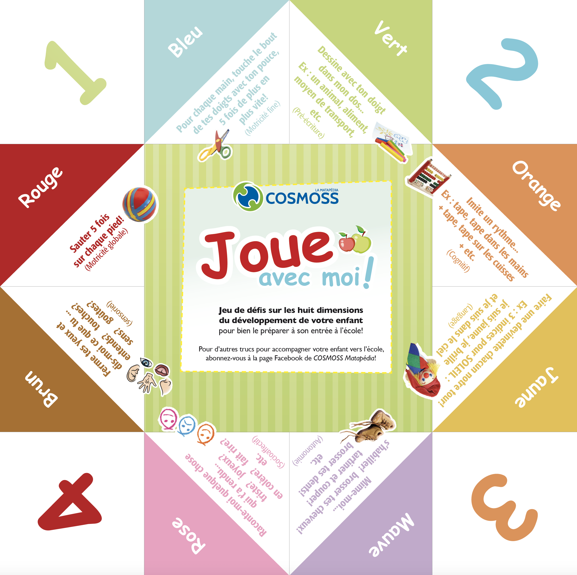 Il a été conçu en 2007, par le Groupe de travail Parent et enfant vers l’école de COSMOSS Matapédia. Il permet d’identifier les domaines qui nécessitent une attention particulière chez certains enfants. Il est complété avec les parents avant d'être acheminé à l’école concernée. De cette façon, le milieu scolaire peut planifier des activités de prévention, prioriser ses interventions éducatives et ajuster ses services selon le portrait de la clientèle préscolaire, et ce, dès la rentrée.