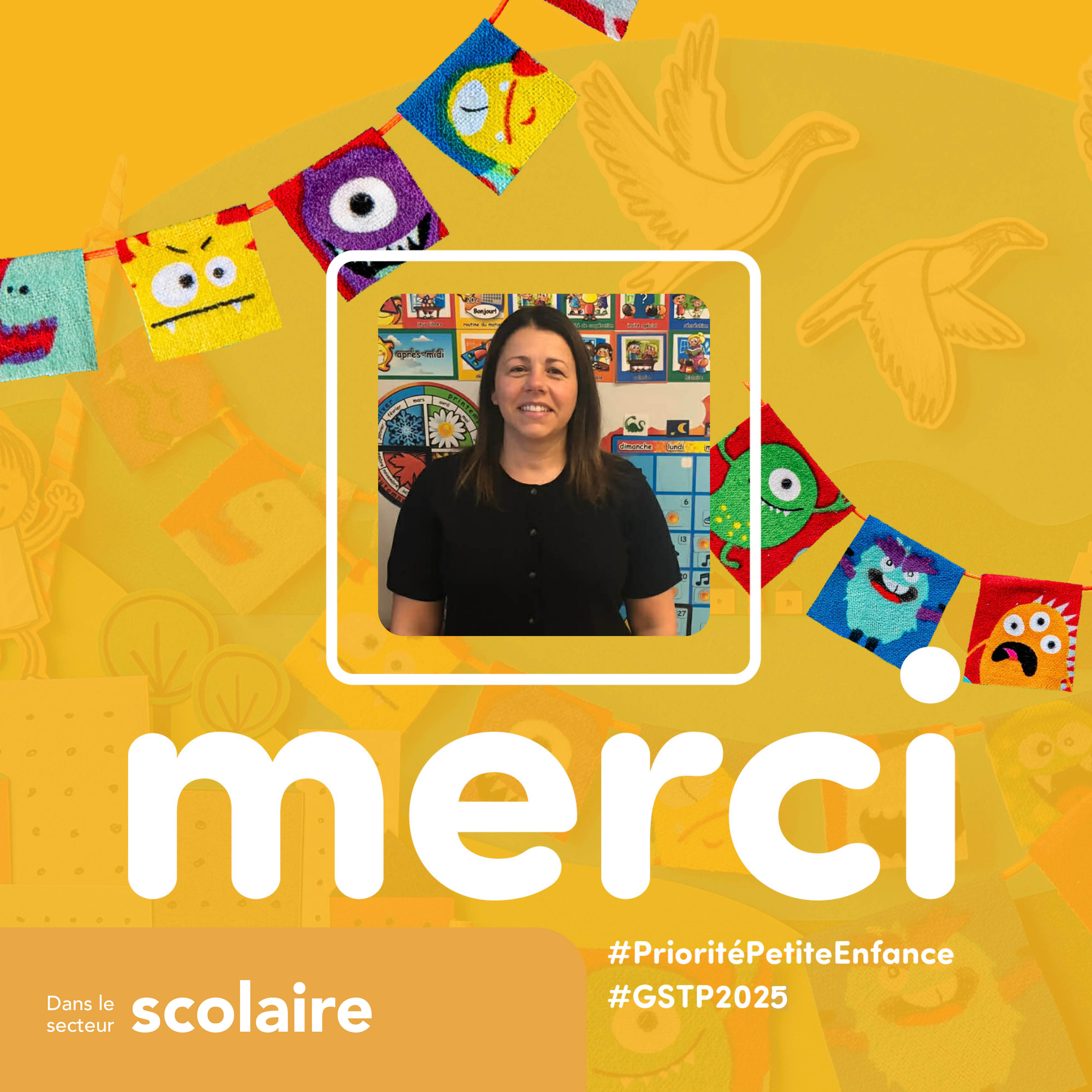 On profite donc de la Grande semaine des tout-petits pour te dire un gros MERCI Sabrina pour ton support et ton engagement!