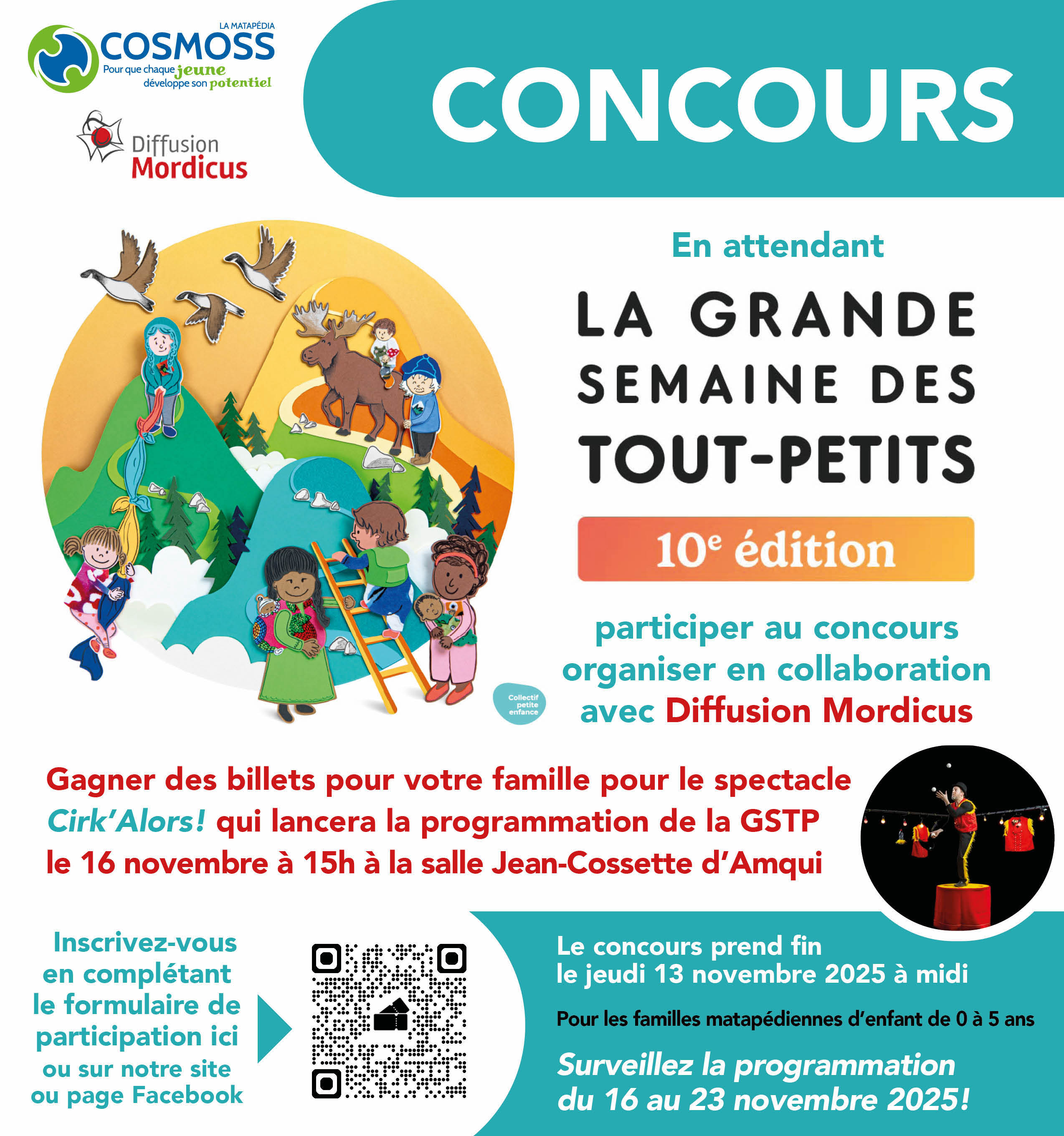 Depuis quelques années, ce mouvement est porté dans la région par les partenaires de COSMOSS la Matapédia. Chaque année, COSMOSS la Matapédia recueille les informations, distribue le matériel promotionnel et produit une programmation détaillée des activités et ateliers offerts aux familles matapédiennes par les partenaires du milieu en petite enfance.