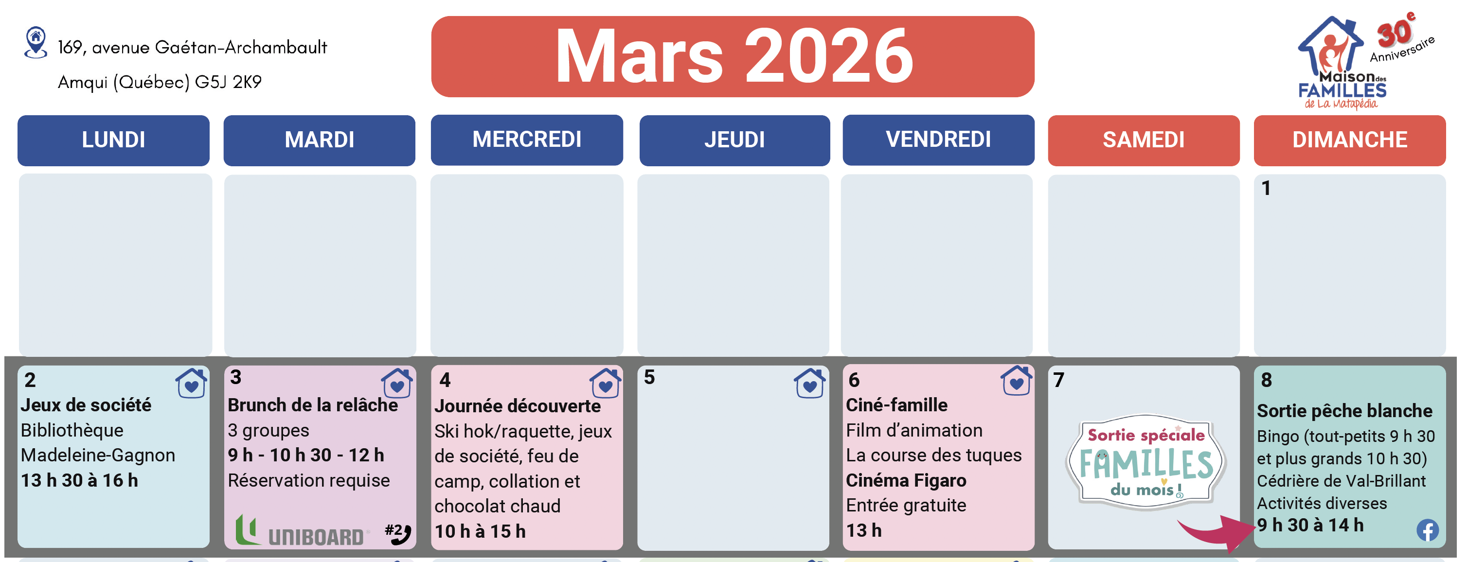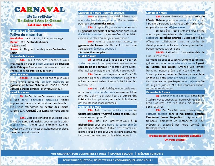 SEMAINE DE RELÂCHE 2026