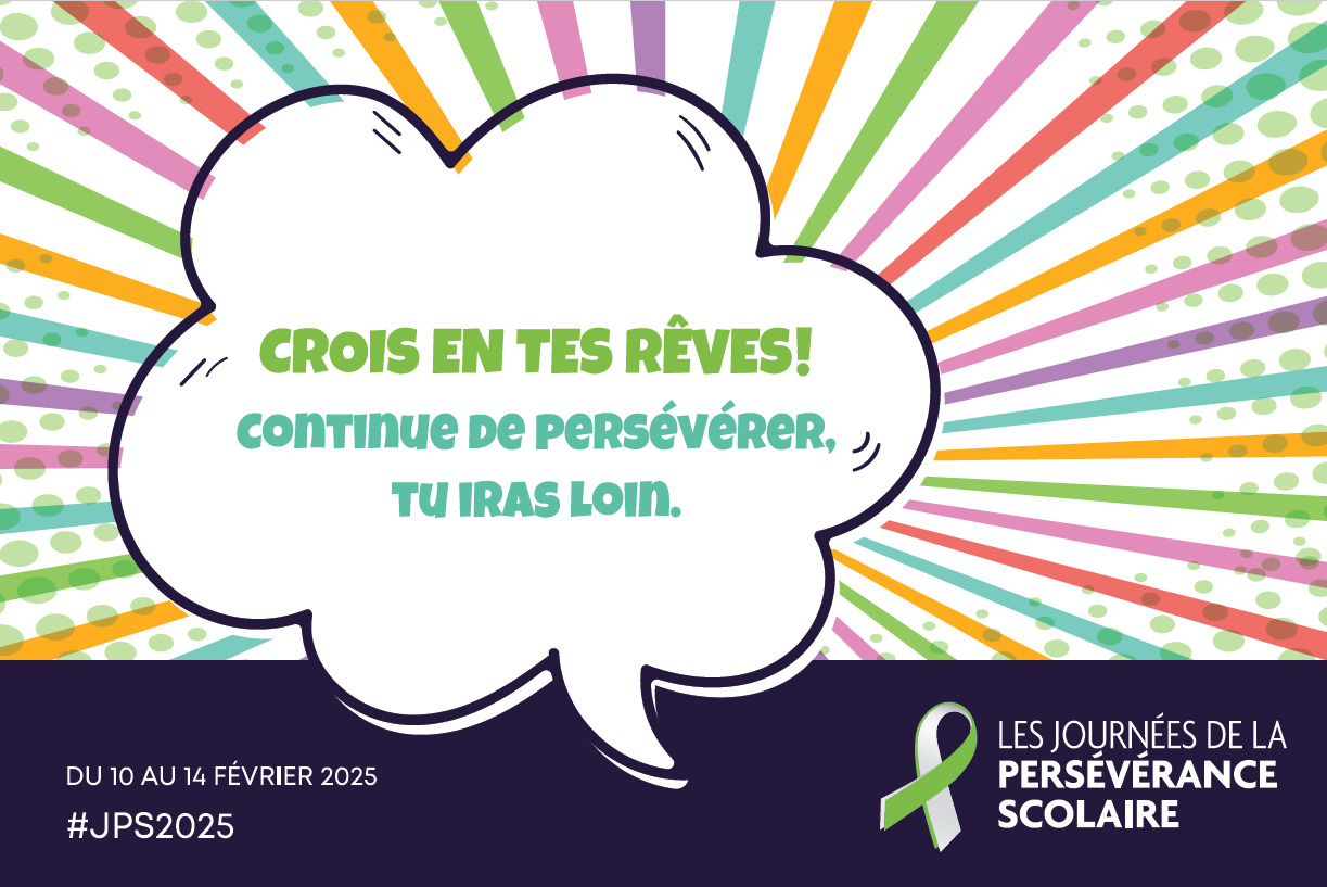 Affichez les couleurs des #JPS2025 dans vos communications et sur vos réseaux sociaux et sensibilisez votre entourage à l'importance de la persévérance scolaire !
