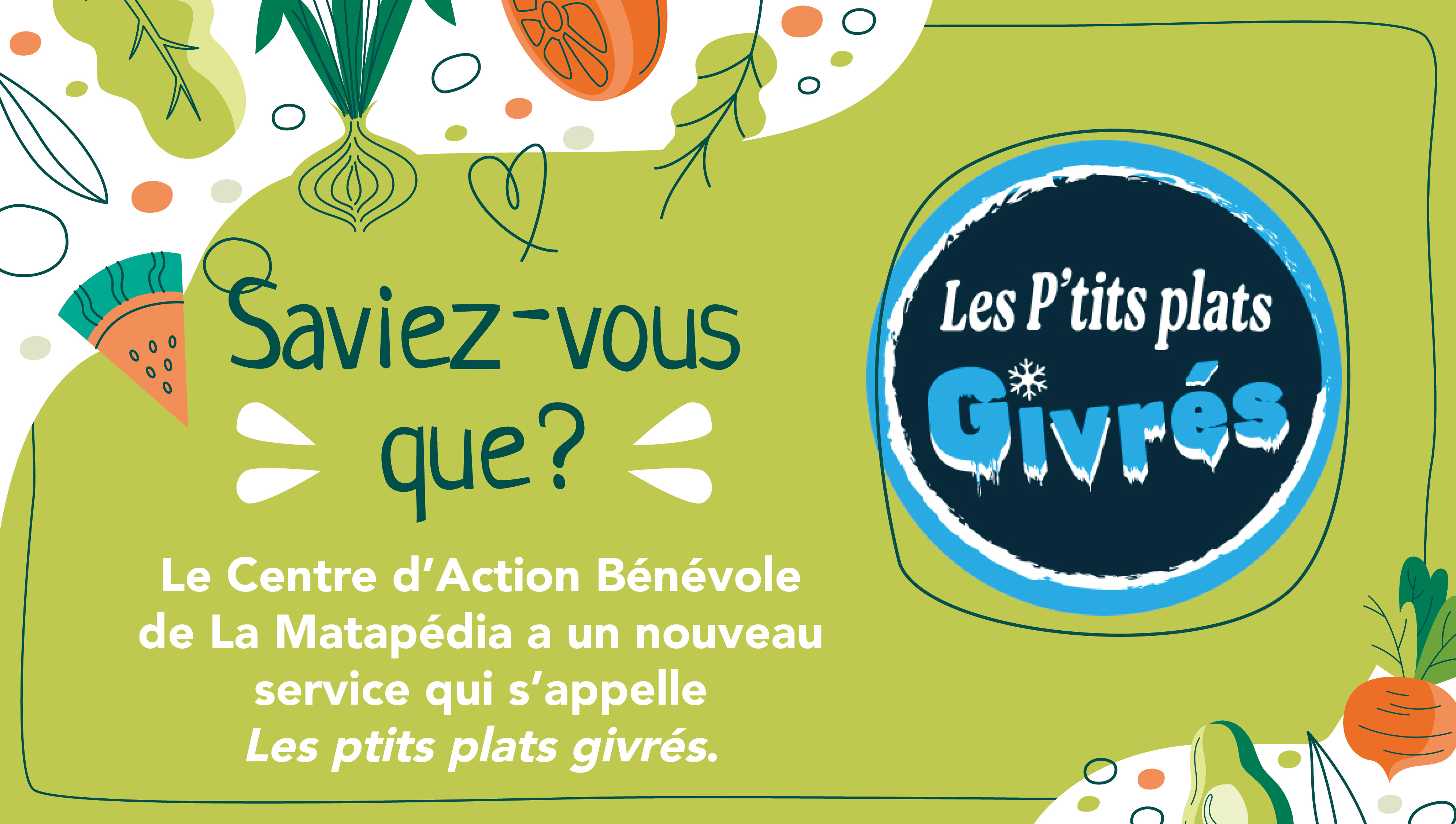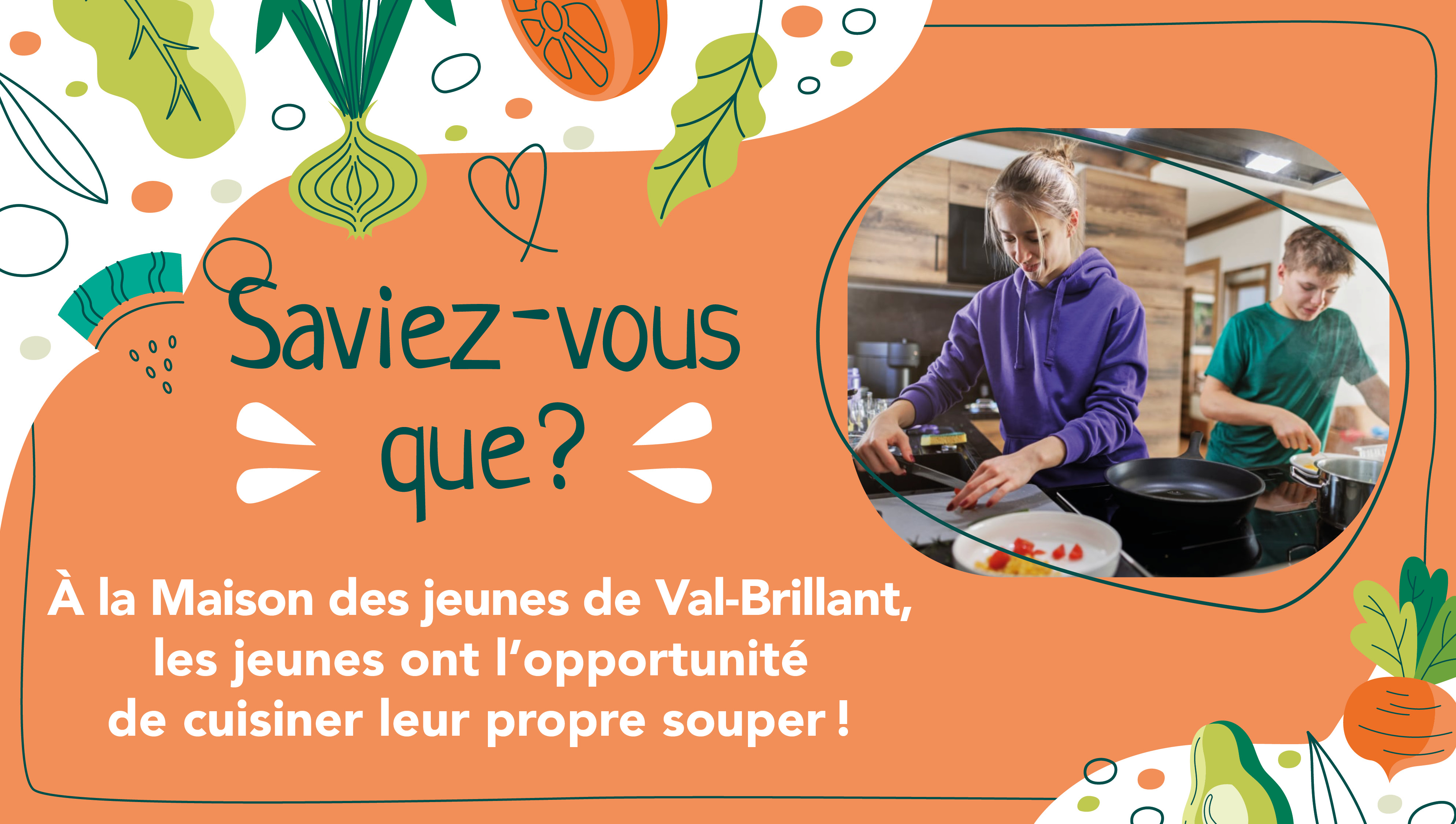 Suivez la page facebook de l’organisme pour voir le menu de la semaine :