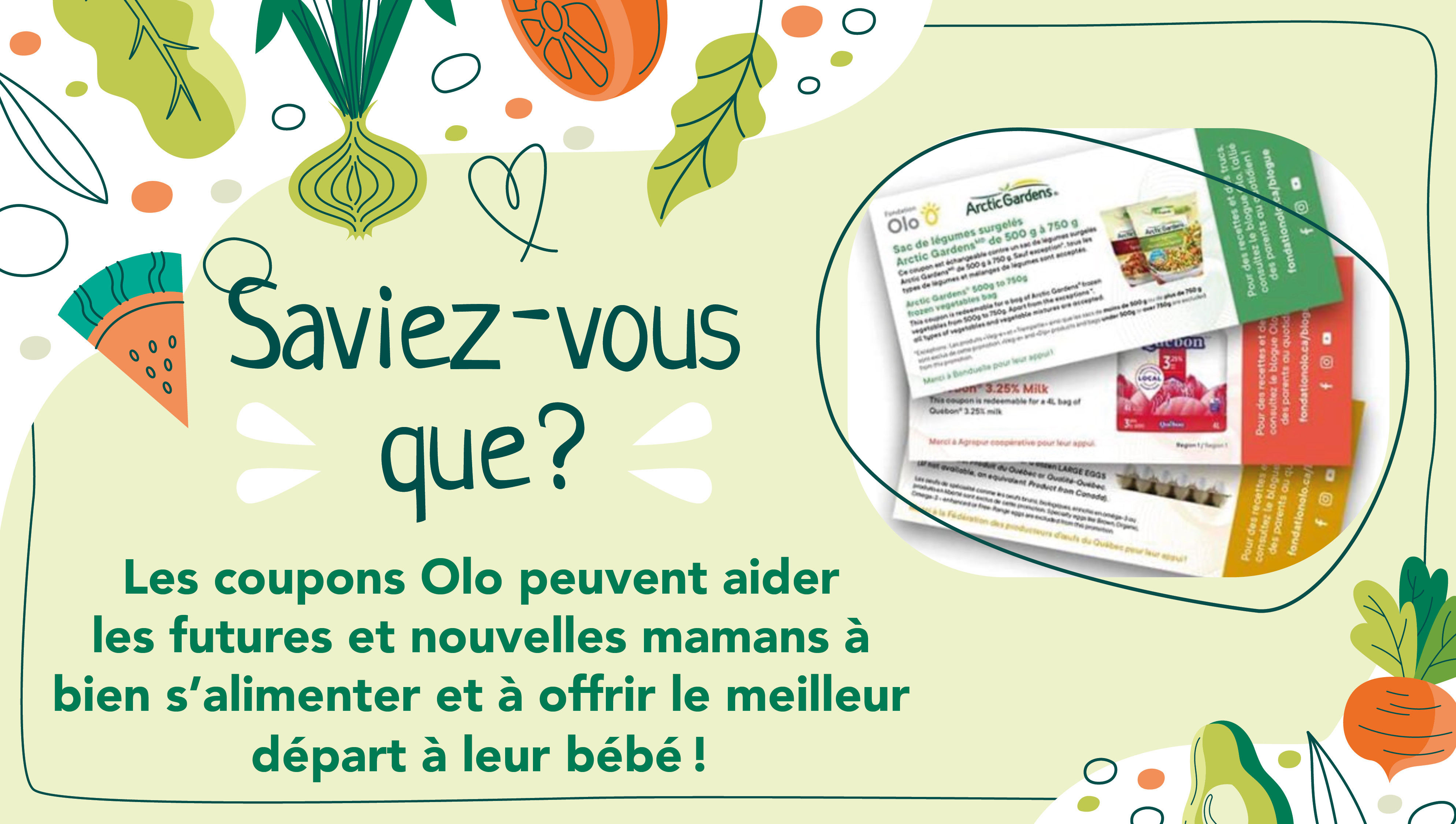 En échange de ta participation, tu reçois des coupons alimentaires pour t’aider à mieux manger durant la grossesse et après la naissance de ton bébé.